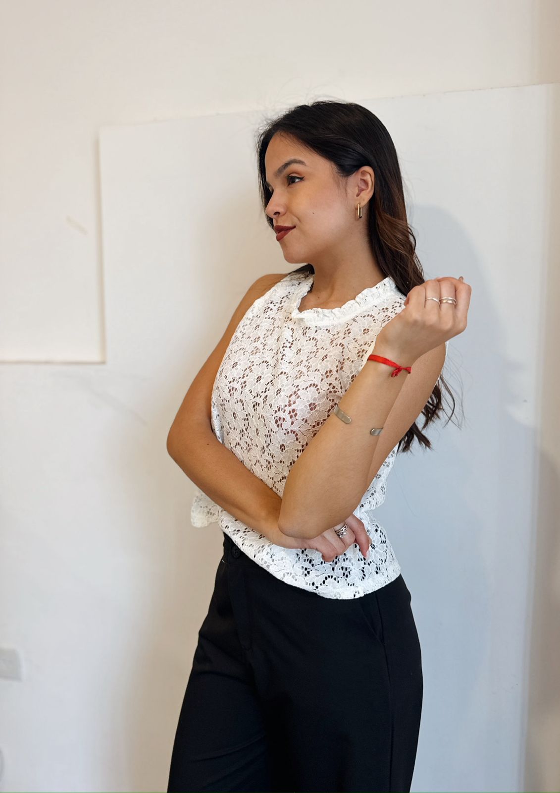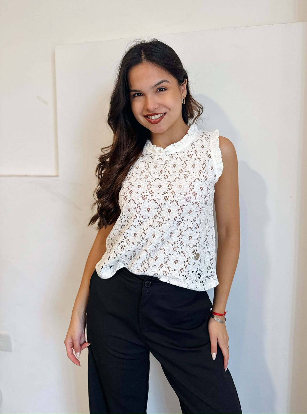 Blusa broderie mini volados mangas ,cuello, botones gota espalda