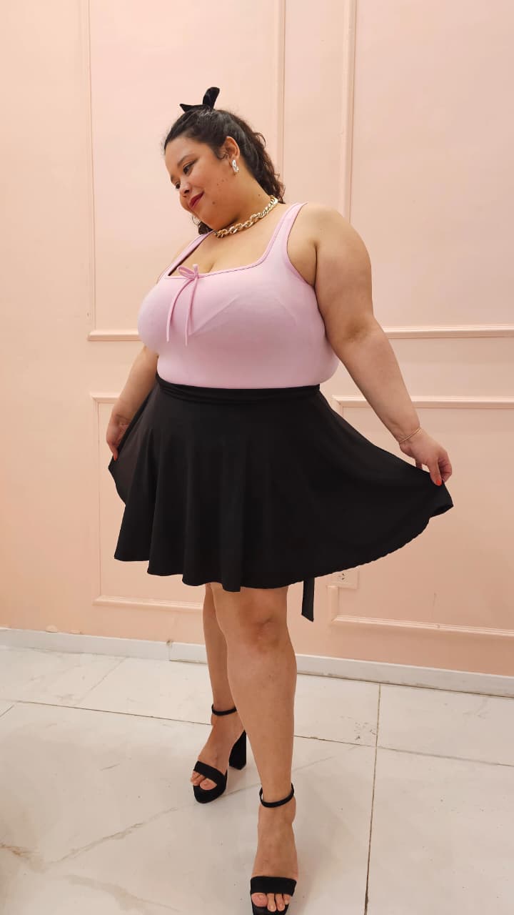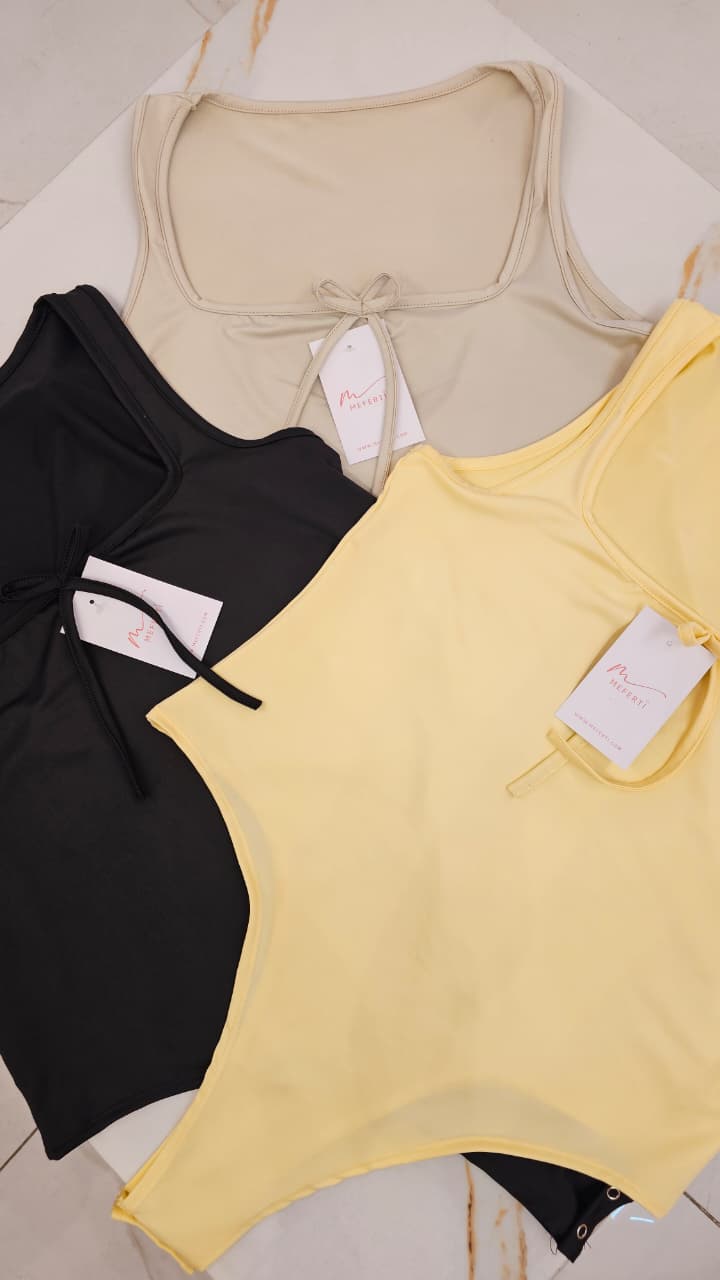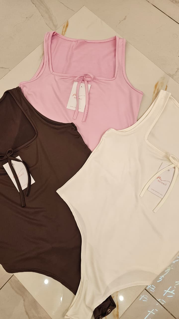 Body de microfibra elastizada con escote cuadrado y lazo en el centro