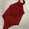 Body de modal, delantero con frunces con escote cerrado para atar en la parte trasera del cuello, espalda descubierta