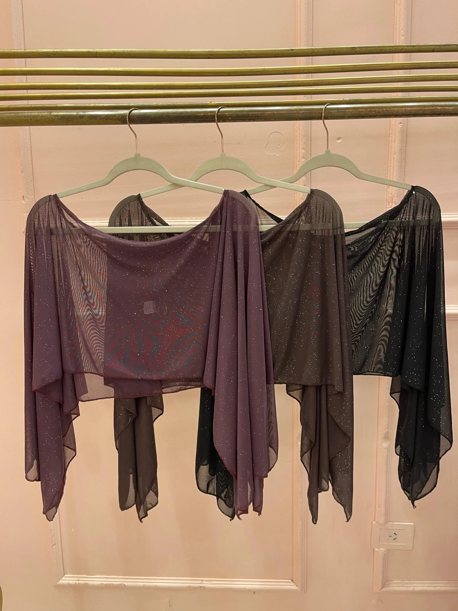 Capita de microtull con destellos de glitter, forma plana rectangular con aberturas para los brazos