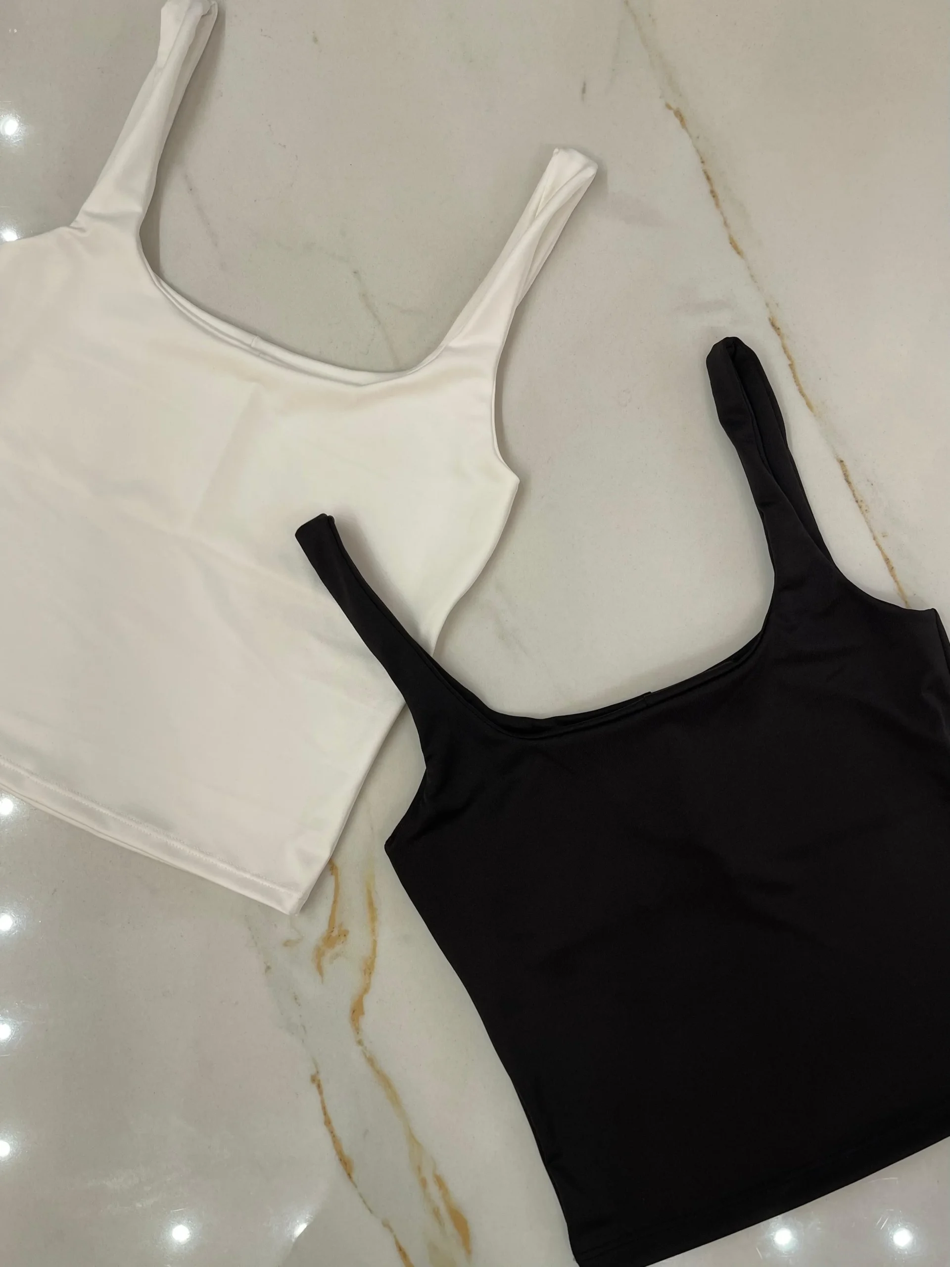 Musculosa cavada básica de microfibra con vista en toda la parte superior y costura invisible