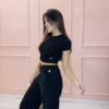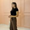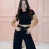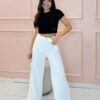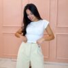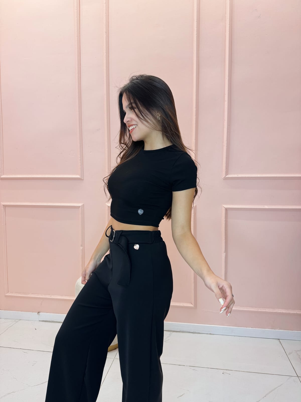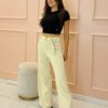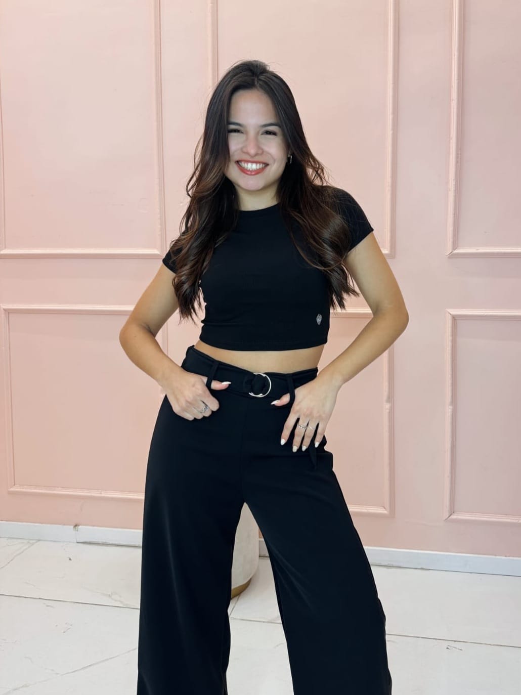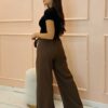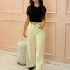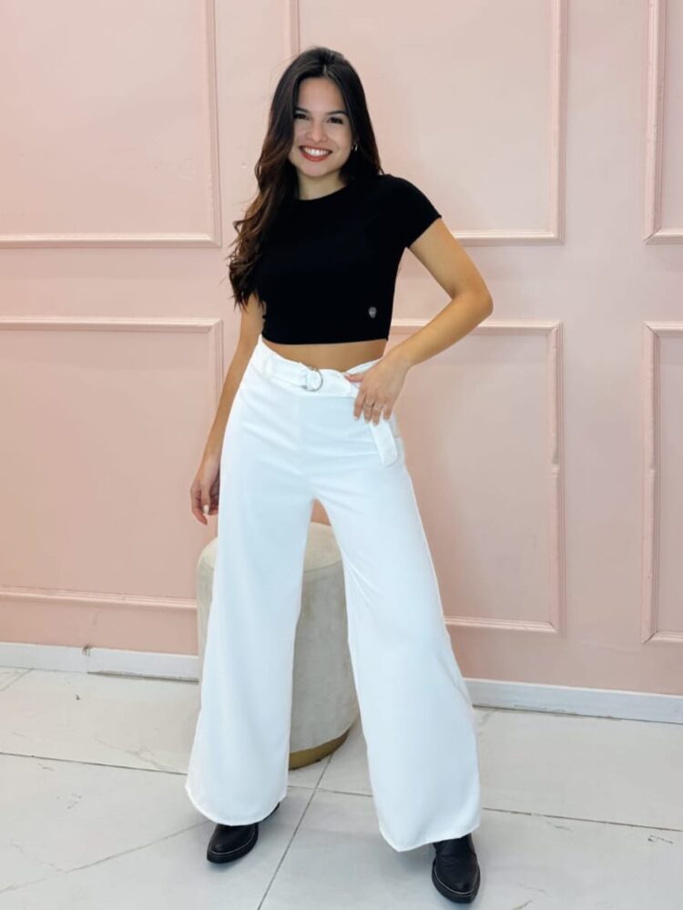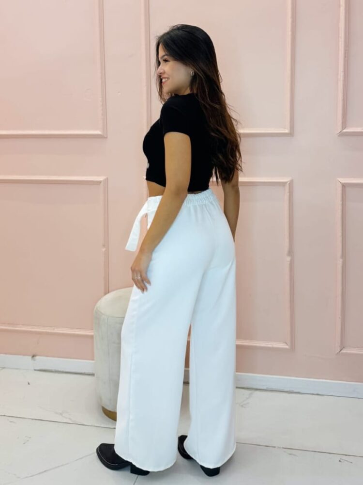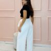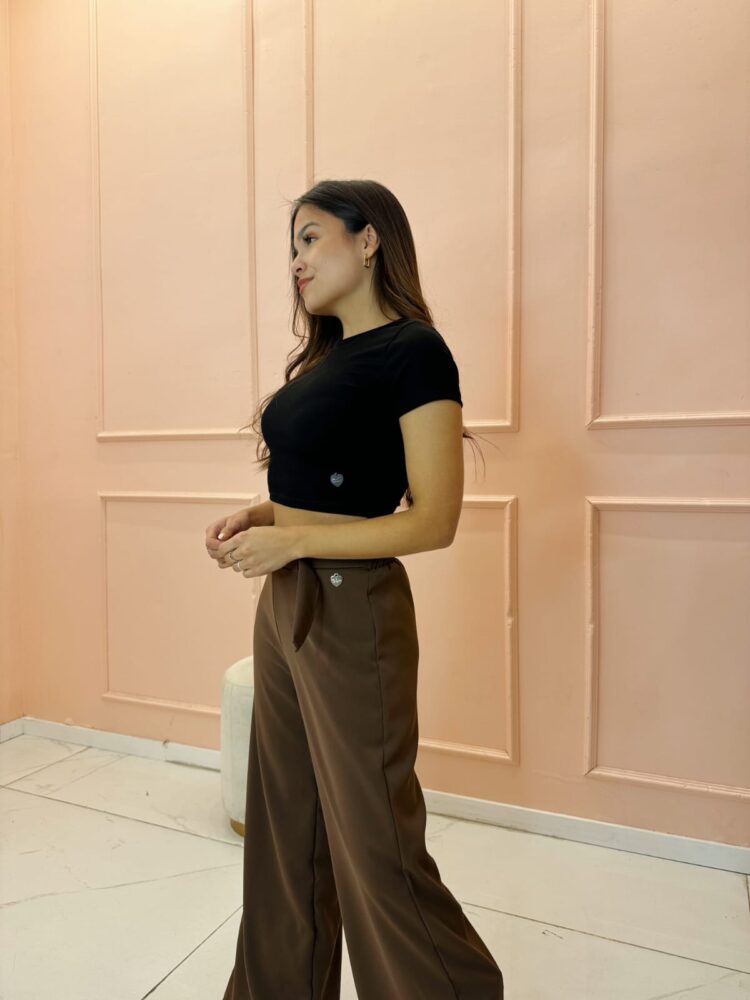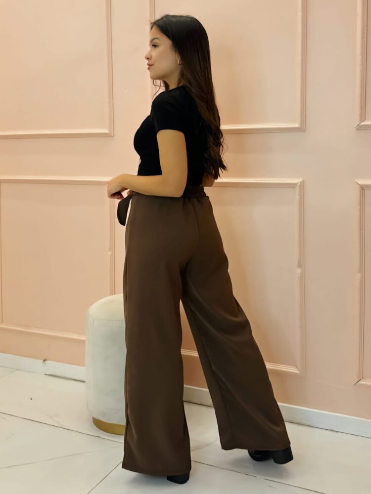 Pantalón de tela sastrera con efecto cinturón para ajustar con aritos y elastico en el trasero