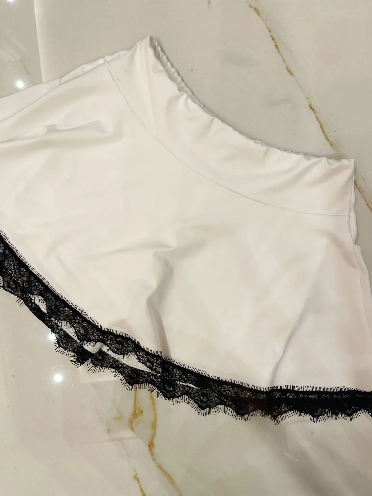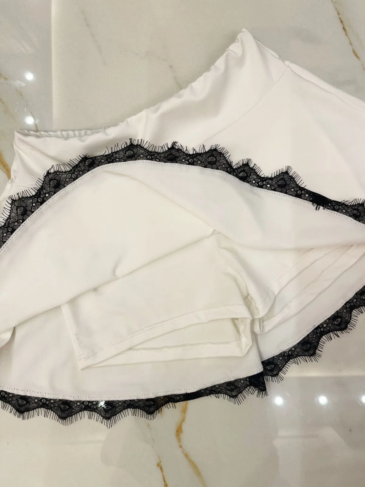 Pollera de microfibra con puntilla y short interior.