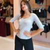 Remera manga 3/4 escote frunce, de tela morley lanilla