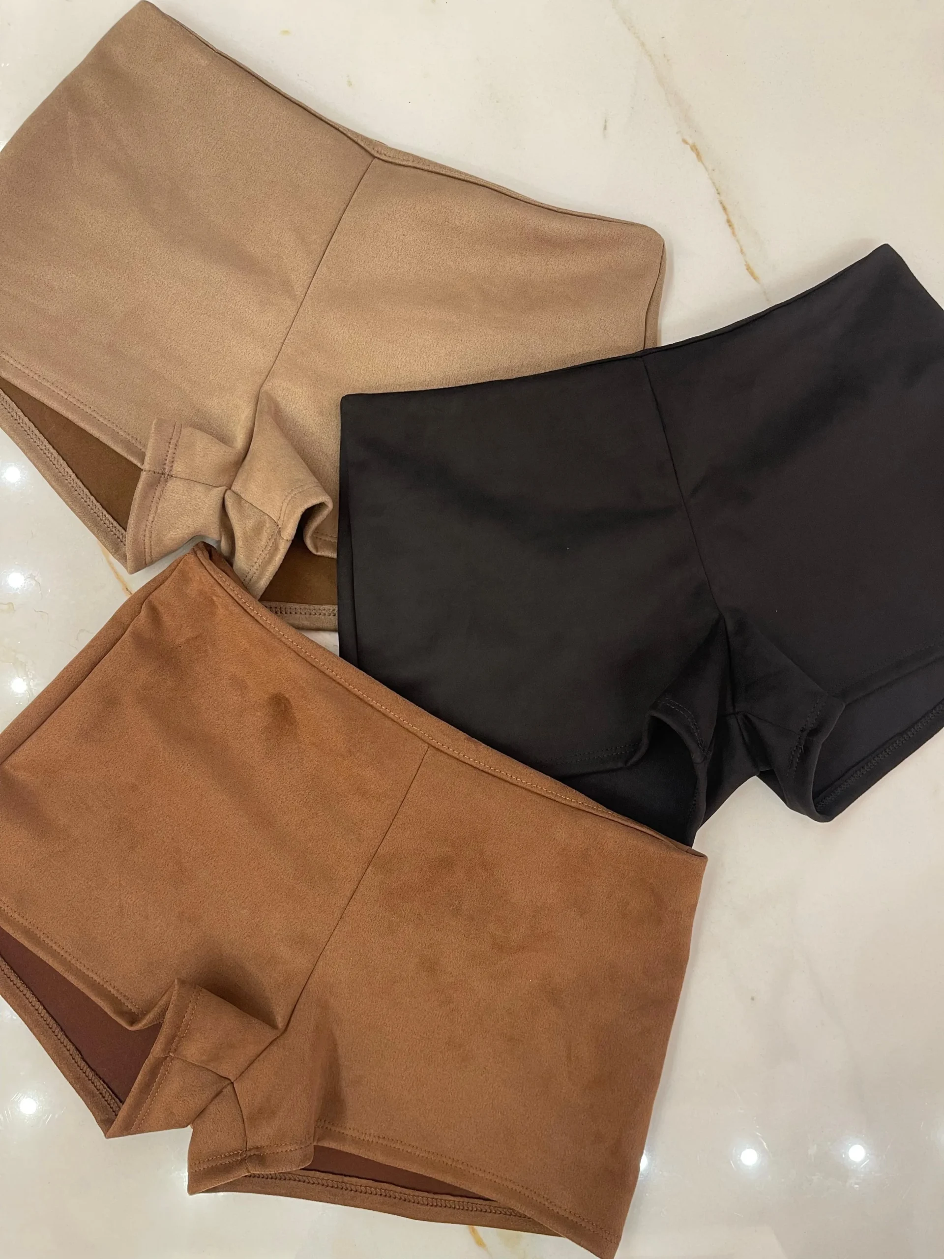 Short básico de gamuza elastizada con pinzas y cierre trasero.