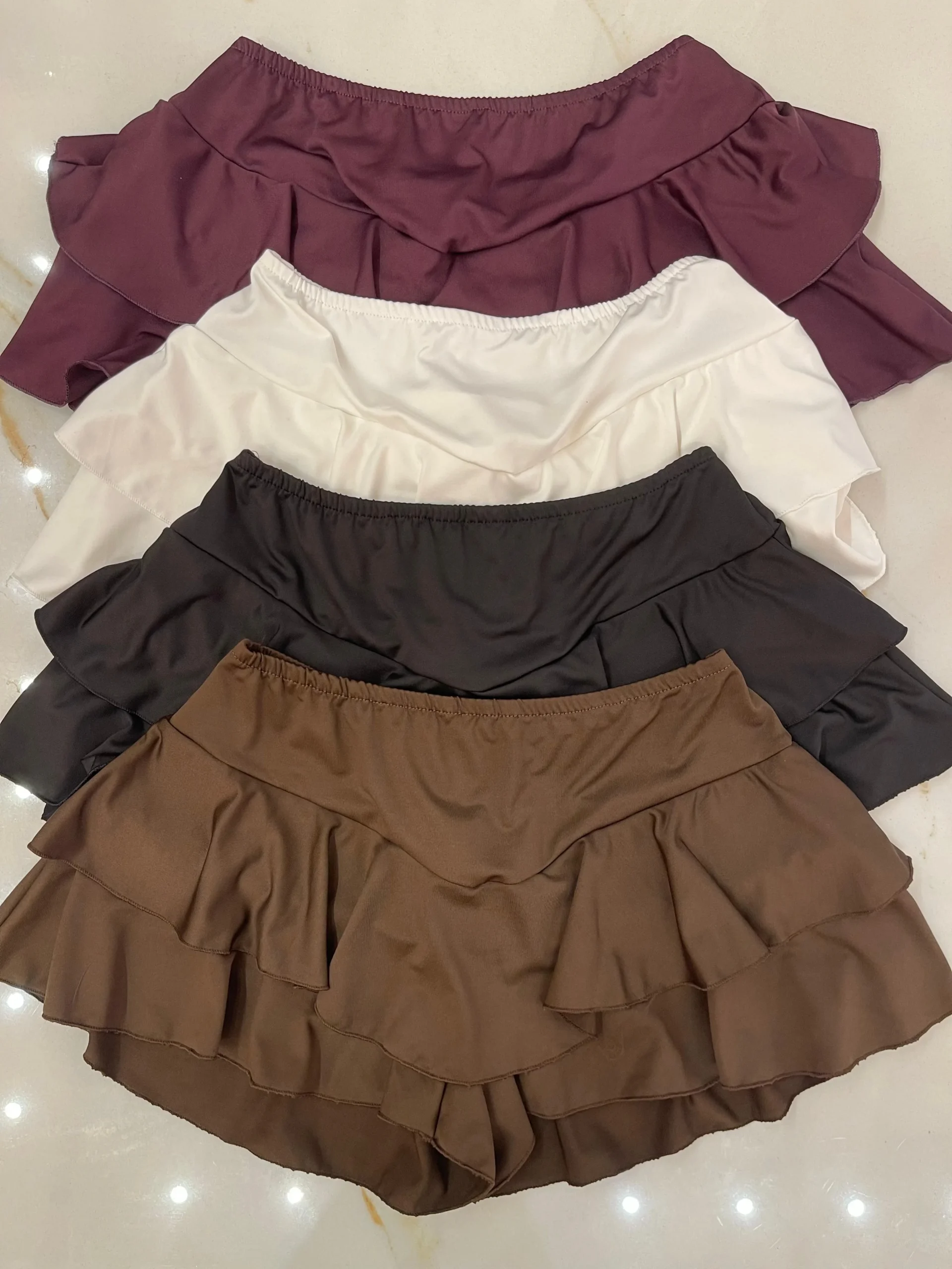 short pollera de microfibra con elástico en la cintura y doble volado.