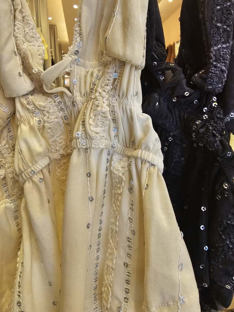 Detalle: Top de microfibra con bordados, lentejuelas, frunce y espalda descubierta