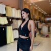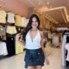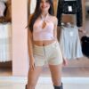 Detalle: Top de microfibra con glitter, con detalle de «V» en el escote