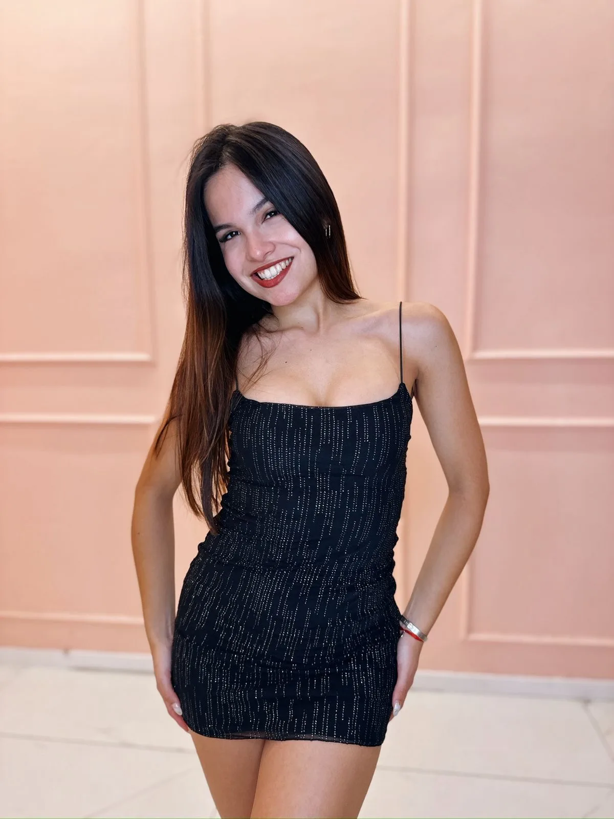 Vestido tirita, de tull con destellos de gliter con correría interna.