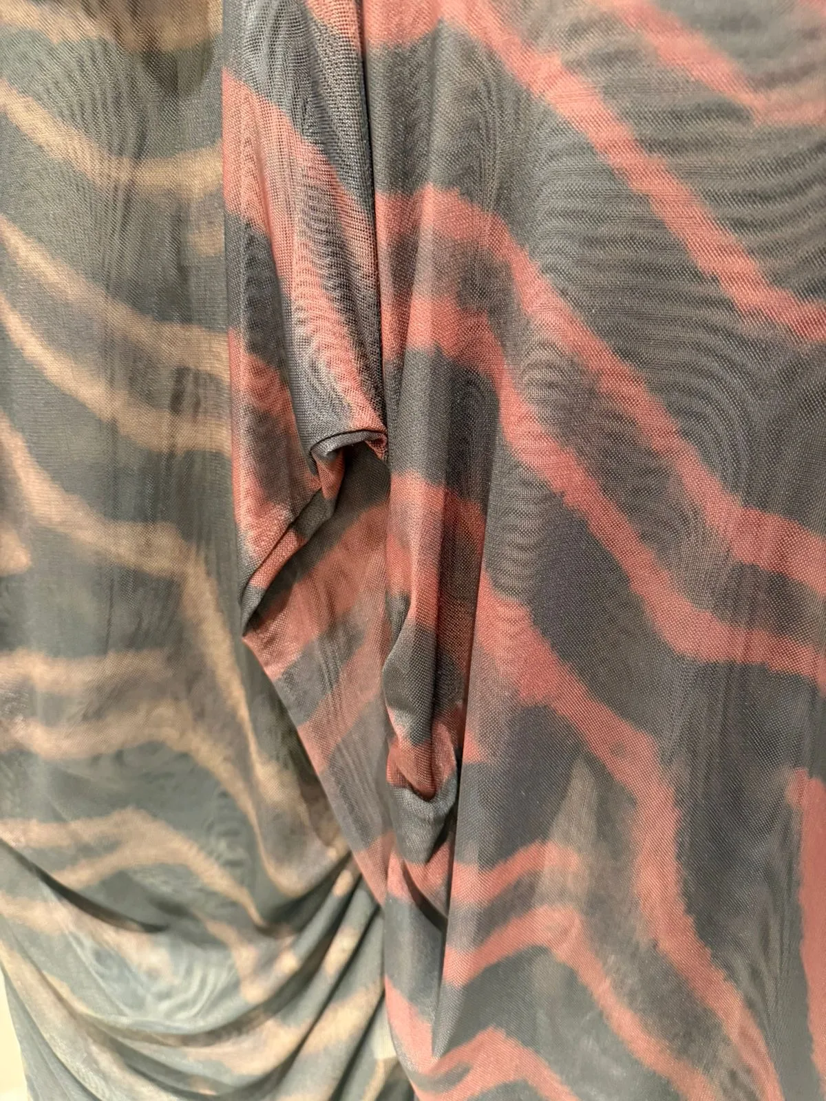 Vestido de Microtull estampado manga larga y frunce costados