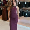 Vestido manga larga de tela Microtull estampado, recorte frunce costado.